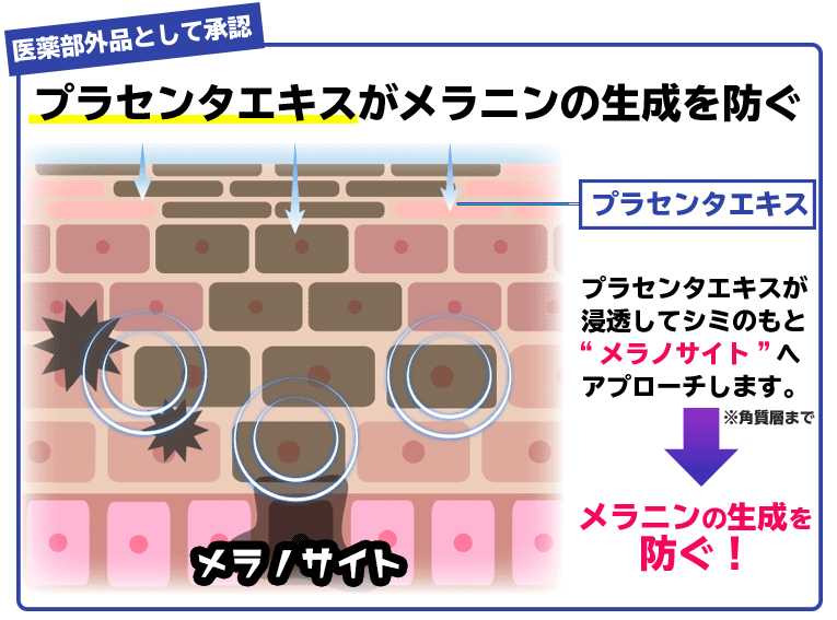 実は、プラセンタにはメラニン生成を抑制する働きがあり、シミをできにくくする効果があるって知ってました?